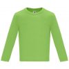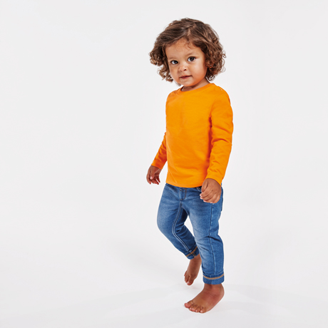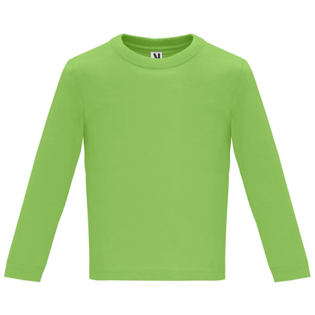 Camiseta de manga larga especial para bebé, confeccionada en tejido en galga fina y acabado compactado. Cuello redondo y apertura en hombro con corchetes desde la talla 6M a 18M. La talla 2A sin apertura en el hombro. Costuras laterales.