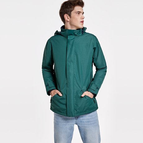 Parka de cuello alto con cremallera inyectada al tono. 1.- Capucha plegada y extraible en cuello con cierre velcro. 2.- Bolsillos exteriores con cremallera, solapa y tiradores.3.- Dos bolsillos interiores con velcro.4.- Puños ajustables con trabillas con velcro.