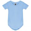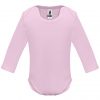 Body de bebé de manga larga de punto liso. Cuello redondo y bajo ribeteado en canalé 1×1. Cierre con botones a presión en la entrepierna. Hombro de apertura cruzada.