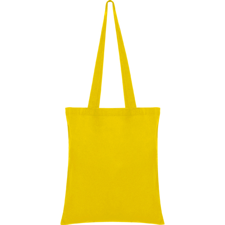 Bolsa fabricada en tejido de algodón en color, con asa larga de cinta en el mismo color.